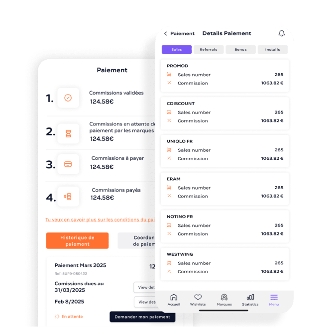 Collabore dès maintenant avec tes marques préférées dans des secteurs variés : mode, beauté, high-tech, déco, et bien plus. Monétise tes contenus grâce aux différentes rémunérations proposées. Participe à des campagnes exclusives et postule aux "programmes ambassadeurs" de grandes marques.